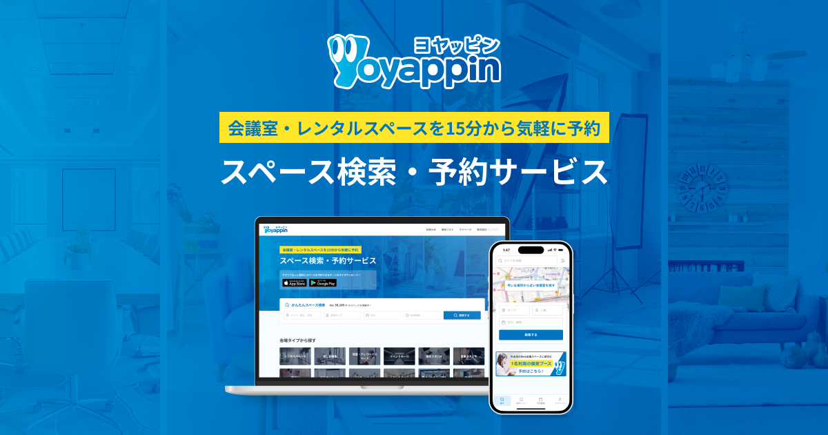 お探しのページが見つかりませんでした | Yoyappin(ヨヤッピン) お探しのページは存在しないか、移動した可能性があります。Yoyappin(ヨヤッピン)で会議室・レンタルスペースを探しましょう。